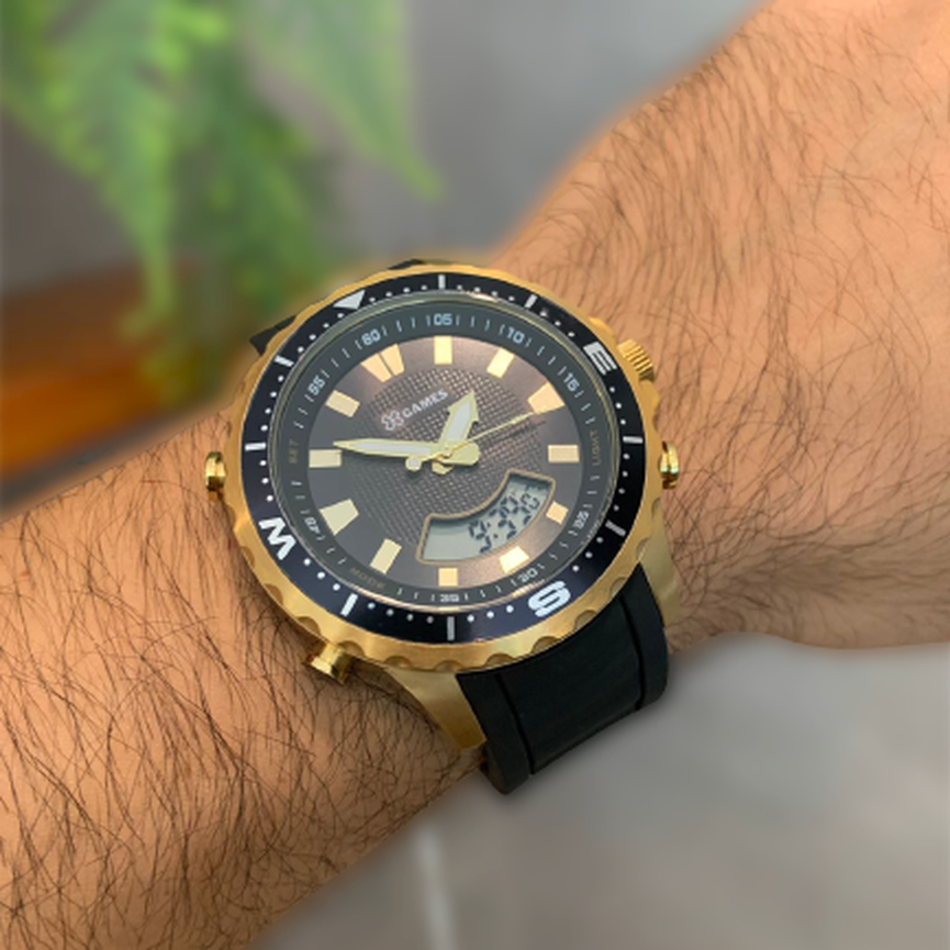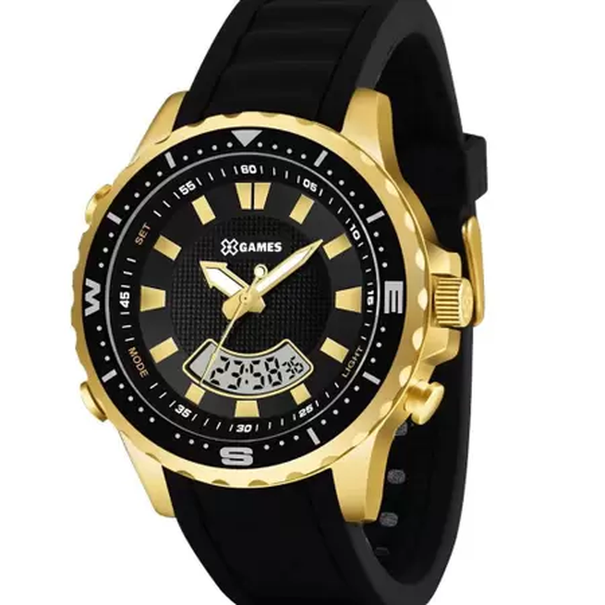 • 1 Relógio X-Games Masculino Dourado Pulseira Silicone XMGPA007 + Embalagem Especial Amoretto